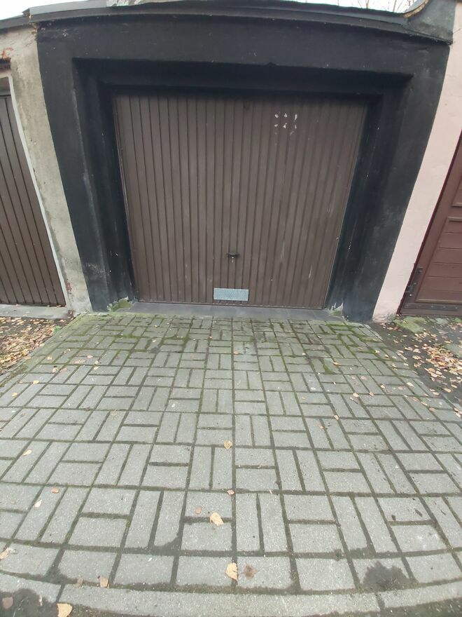 Suchy, solidny, przed garażem kostka brukowa . W garażu kafelki na podłodze.