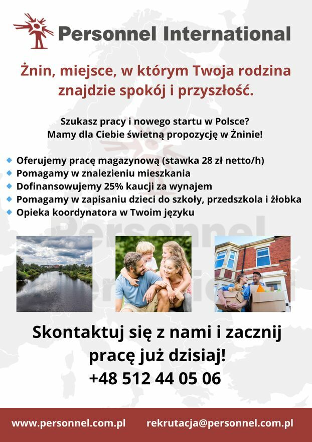 Praca z zakwaterowaniem i wyżywieniem w Żninie-dotyczy też rodzinŻnin – nowe miejsce, nowy start