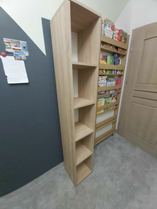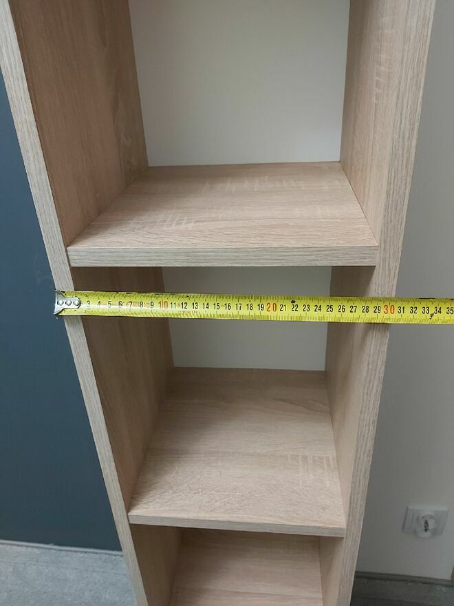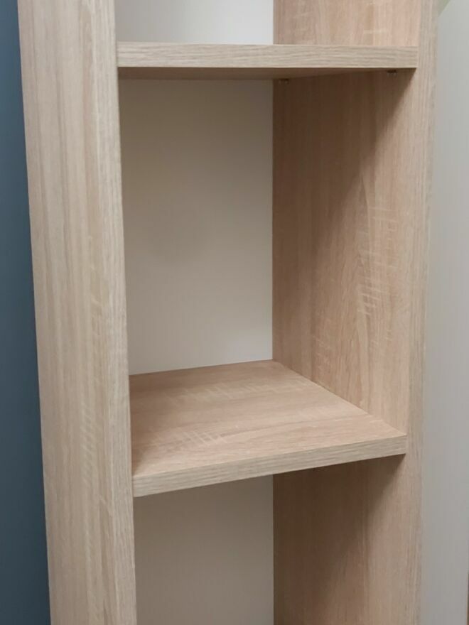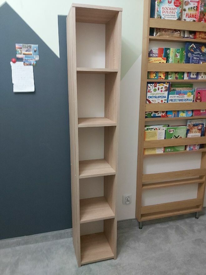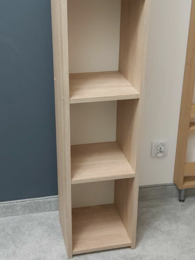 Nowy już złożony regał dąb sonoma. Regał złożony nie używany. Sprzedawany ze względu na wymiary. 180x30x30Regał jest złożony a więc zyskujesz 1godzinę.