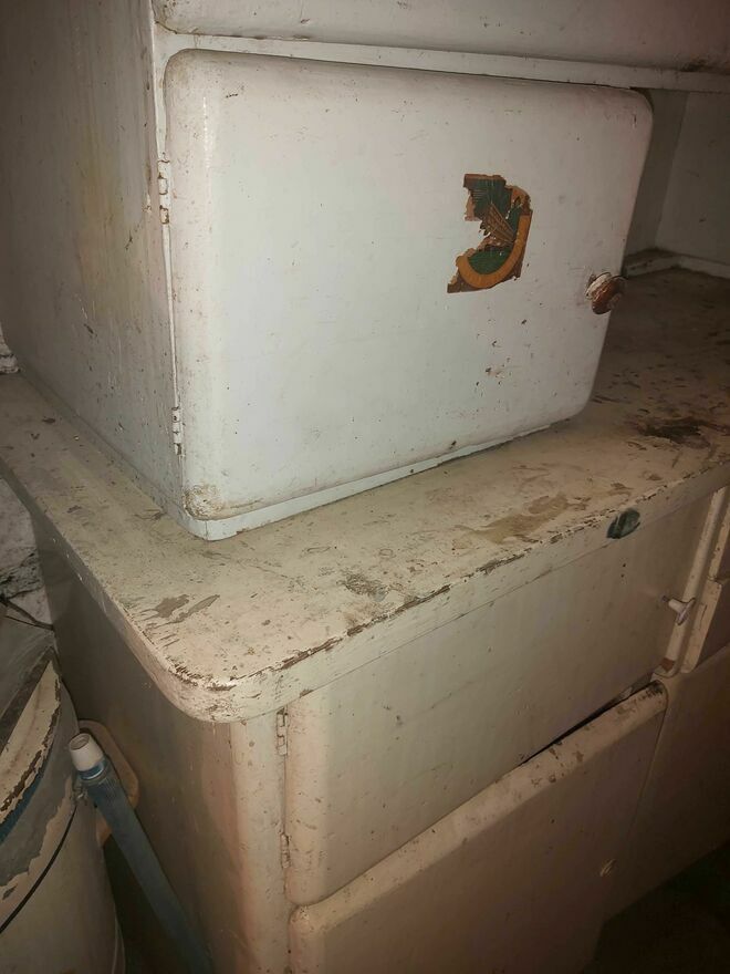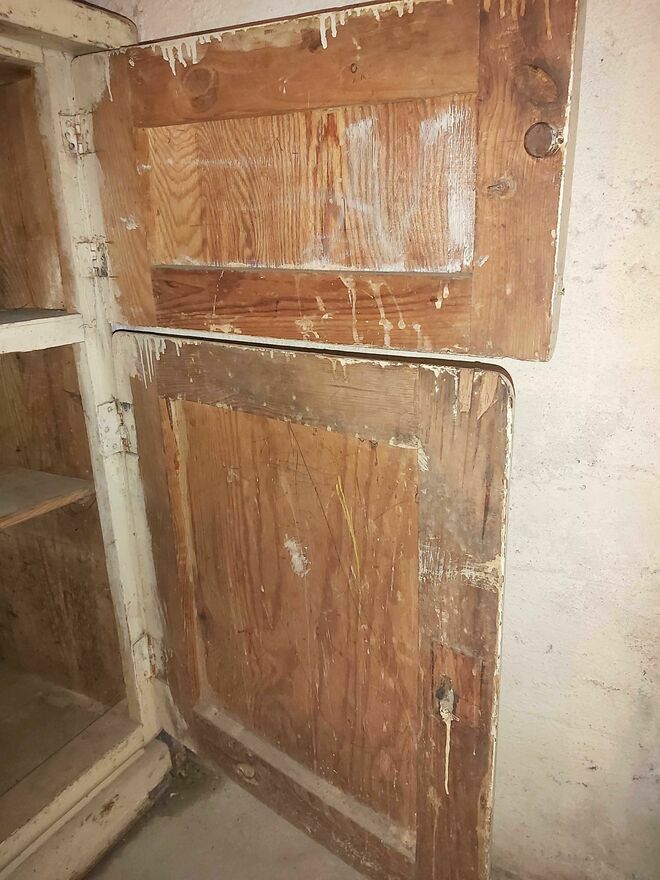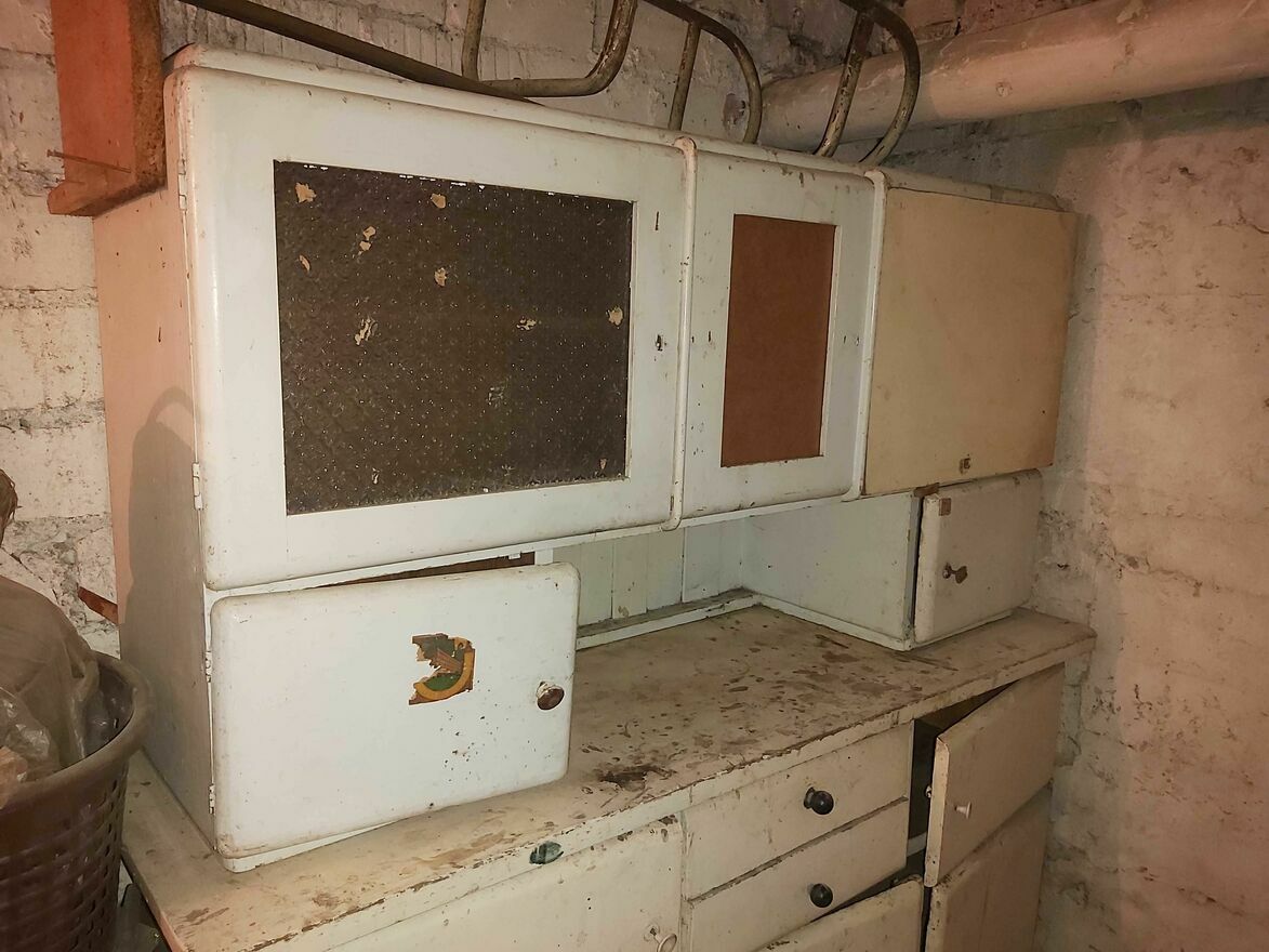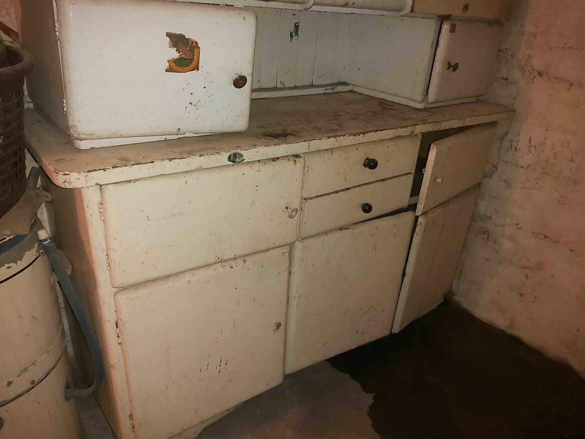 Drewniana Stara szafa kuchenna z lat 50tych. Do renowacji.Szerokość 160cm